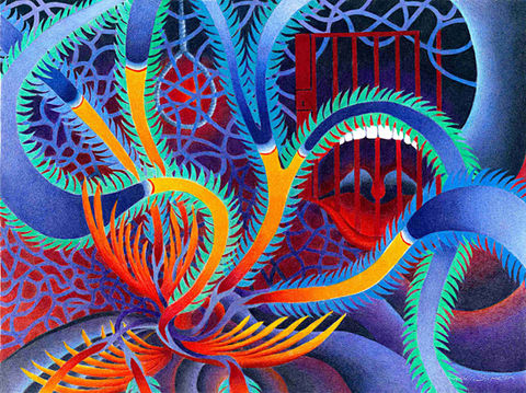 Created on a firm board using Colored and Ink Tense pencils with Acrylic paint.